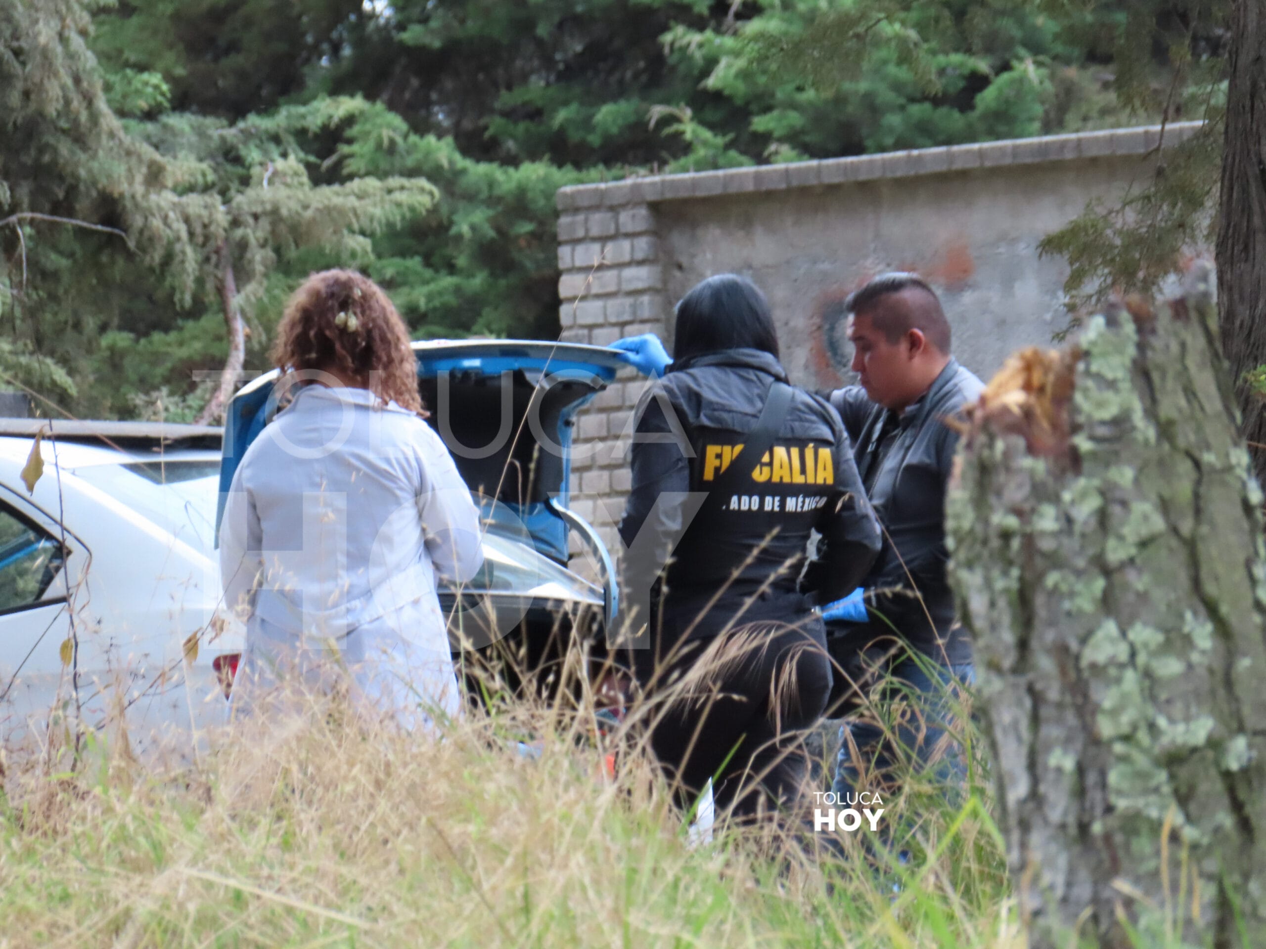 ZINACANTEPEC, Edomex.,6 de febrero de 2026.-Al interior de la cajuela de un taxi, abandonado sobre un camino de terracería de una zona boscosa, un hombre fue hallado con golpes y estrangulado en la comunidad de La Huerta, la víctima no pudo ser identificada. El vehículo del servicio público Chevrolet al