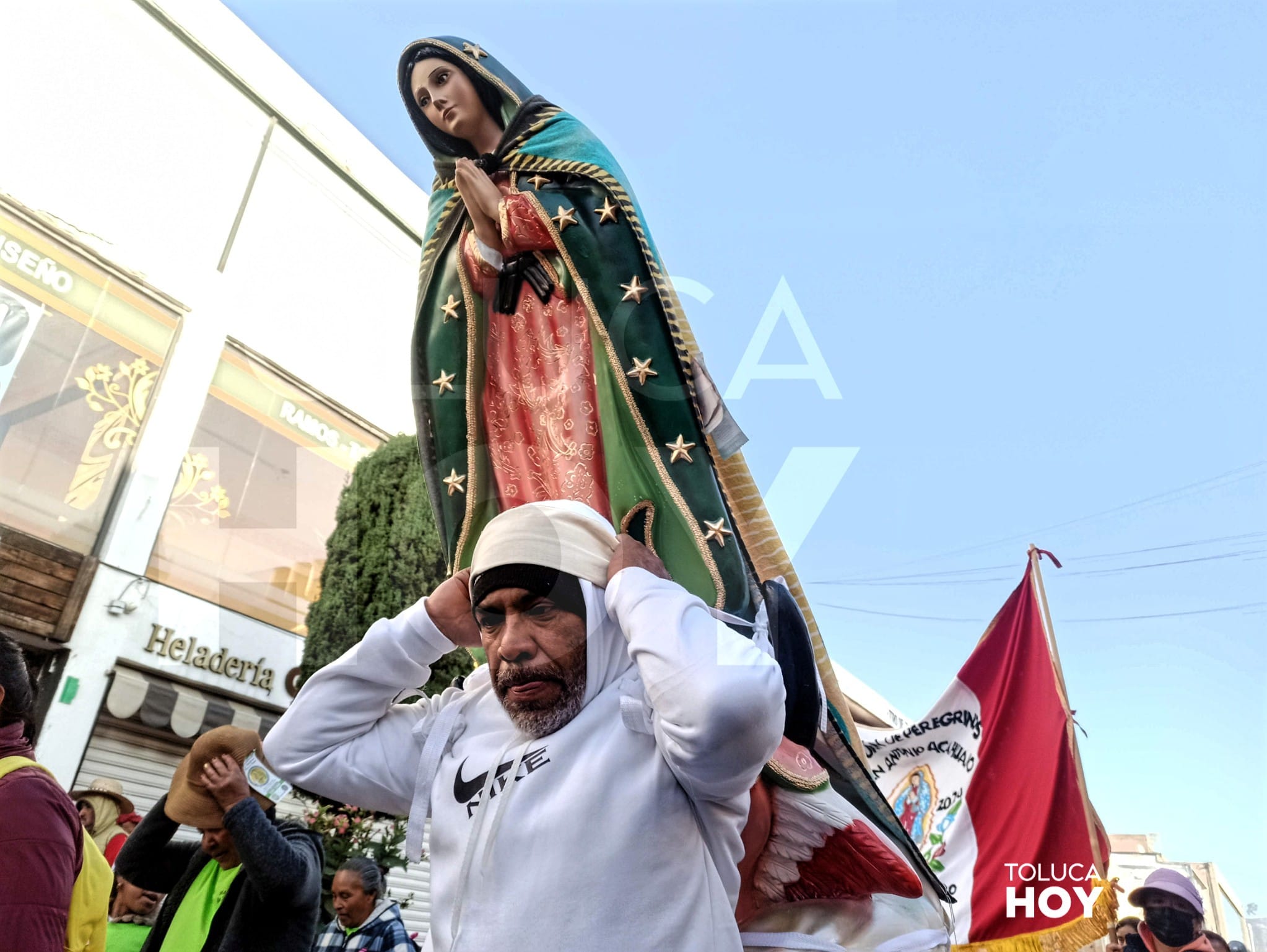 Félix carga una Virgen de 1.80 m en su peregrinar al Tepeyac