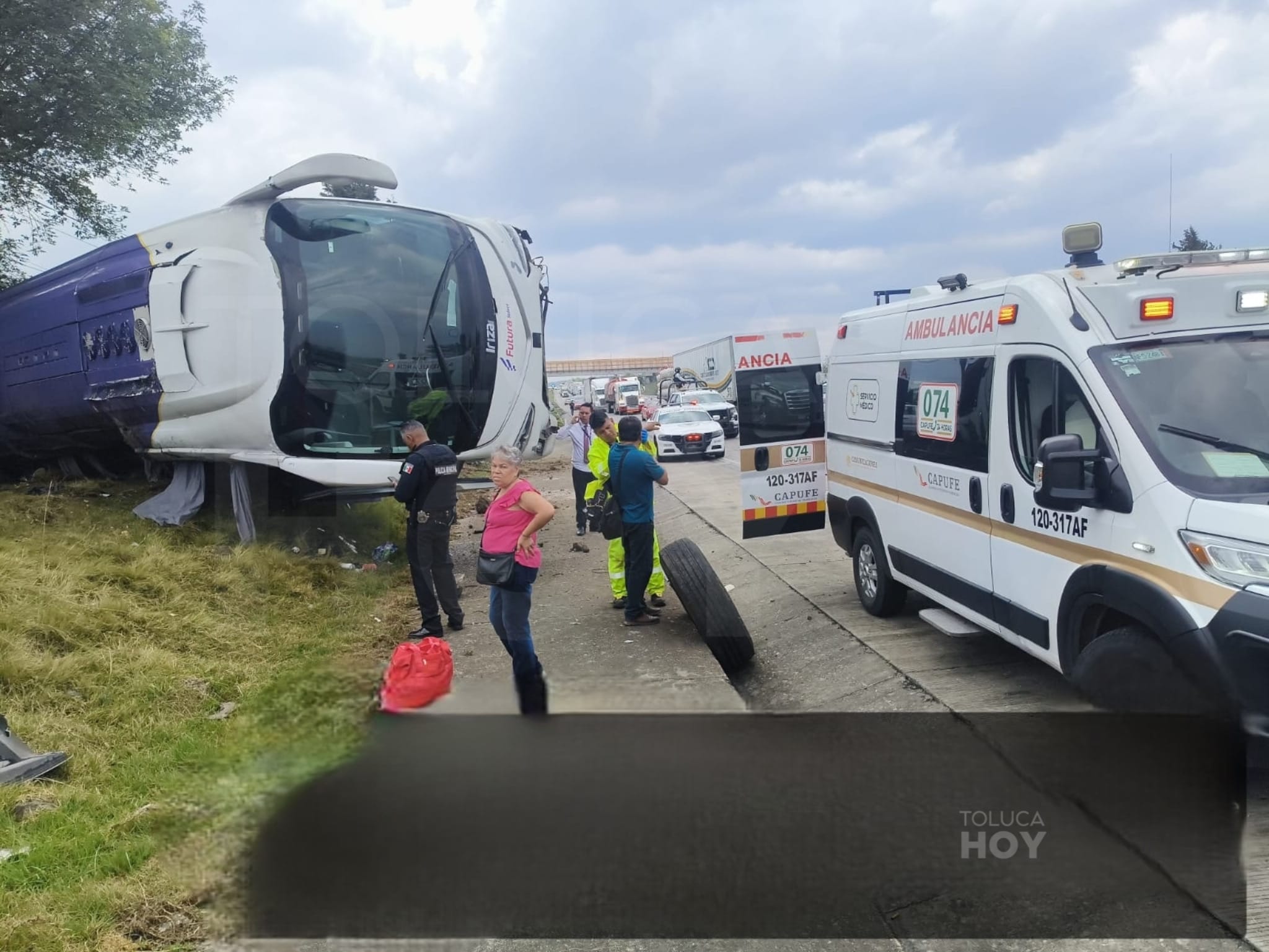 Vuelca autobús de pasajeros en Edomex; un muerto