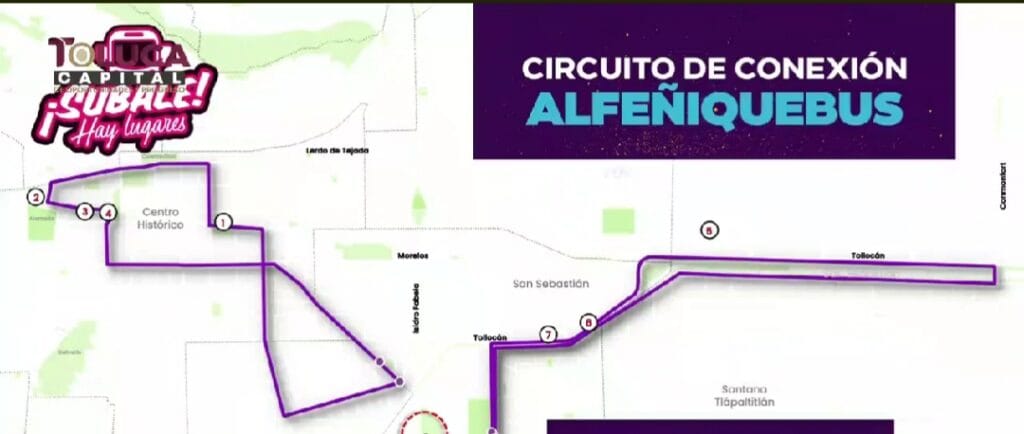 TOLUCA, Edomex, 8 de octubre de 2025.- Con dos circuitos que partirán de Galerías Toluca y Vips del centro, operará el AlfeñiqueBus que tiene como fin reducir la concentración vial en la zona de la Terminal-Mercado Juárez para los conciertos estelares de la Feria y Festival Cultural del Alfeñique Toluca 2025.