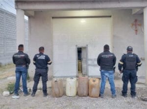 ALMOLOYA DE JUÁREZ, Edomex.,13 de marzo de 2026.-Una bodega con miles de litros de hidrocarburo fue ubicada a pie de la carretera, aunque no hubo