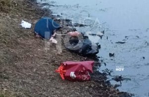 ALMOLOYA DE JUÁREZ, Edomex.,10 de 2025.-El feto de un bebé fue abandonado a pie de una presa junto a unas bolsas de plástico en la
