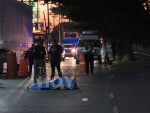 METEPEC, Edomex.,9 de enero de 2025.-Al lado del cuerpo de una mujer que no pudo ser identificada, luego de ser atropellada vecinos colocaron una veladora,
