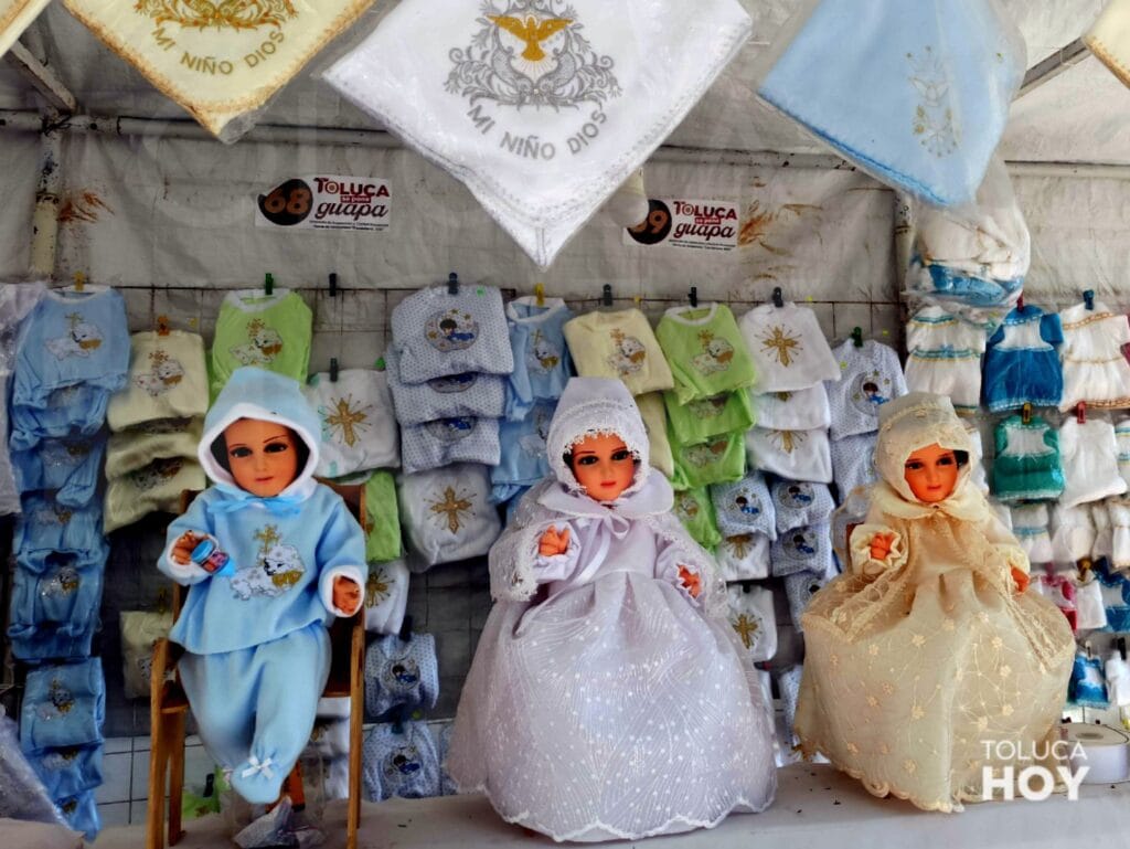 Vestimenta de partidos de fútbol y personajes ya no son tan buscados por las familias para vestir a sus Niños Dios. Los ropones de colores claros y ropa de bebé son los que más buscan, indicó María del Carmen de la Cruz, comerciante originaria de San Cristóbal Huichochitlán.