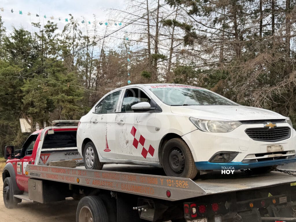 El vehículo del servicio público Chevrolet al que trataron de borrarle el número económico y cromática de la base Guadalupe de Almoloya de Juárez estacionado en la calle Benito Juárez alertó a los vecinos.