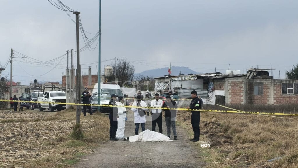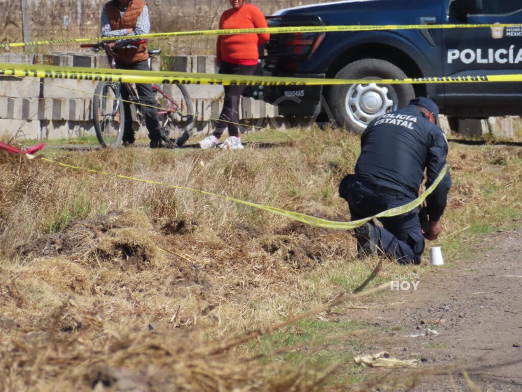 TOLUCA, Edomex.,19 de enero de 2026.-Un hombre que no pudo ser identificado fue asesinado a balazos en un camino de terracería en la comunidad rural de San Andrés Cuexcontitlán Séptima Sección, en el sitio quedaron cerca de 15 casquillos percutidos.