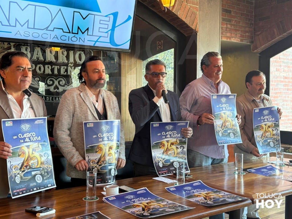 TOLUCA, Edomex; 7 de noviembre de 2025.- Con la exhibición de vehículos clásicos de hasta 40 años de antigüedad, los amantes del automovilismo podrán disfrutar del Clásico de Altura en su 25 aniversario.