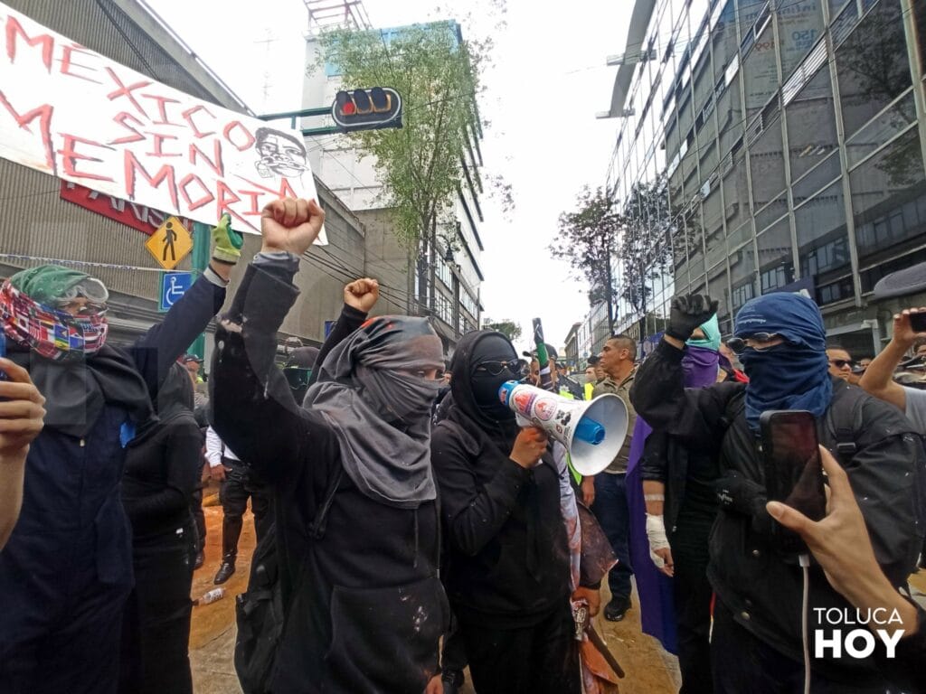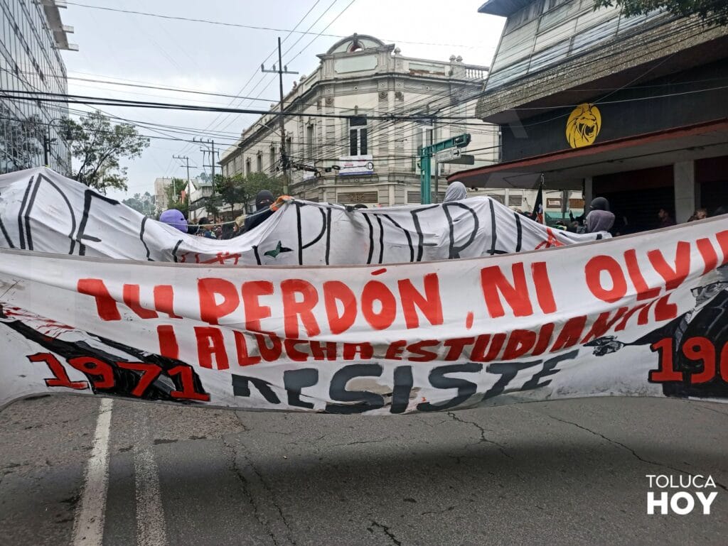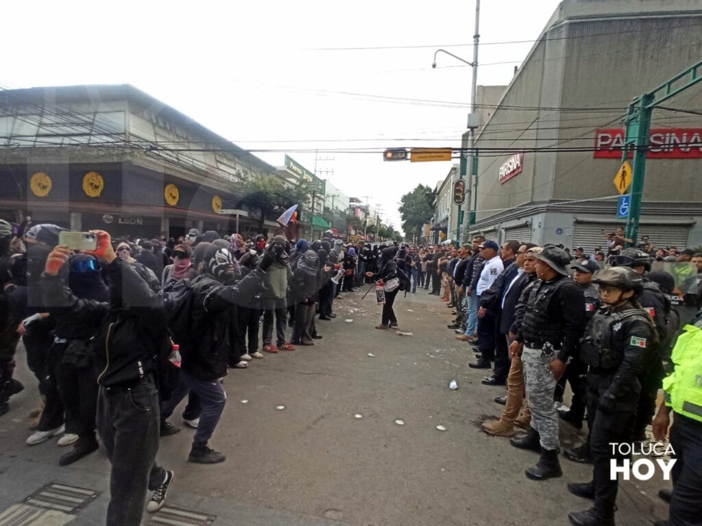 Partieron desde Ciudad Universitaria, pasaron por diversos espacios de la UAEMéx como Facultad de Medicina, Prepa 1 y Rectoría-Casa del Estudiante, pero al no poder avanzar hacia el Centro Histórico se enfrentaron con policías en el cruce de Avenida Hidalgo y Juárez.