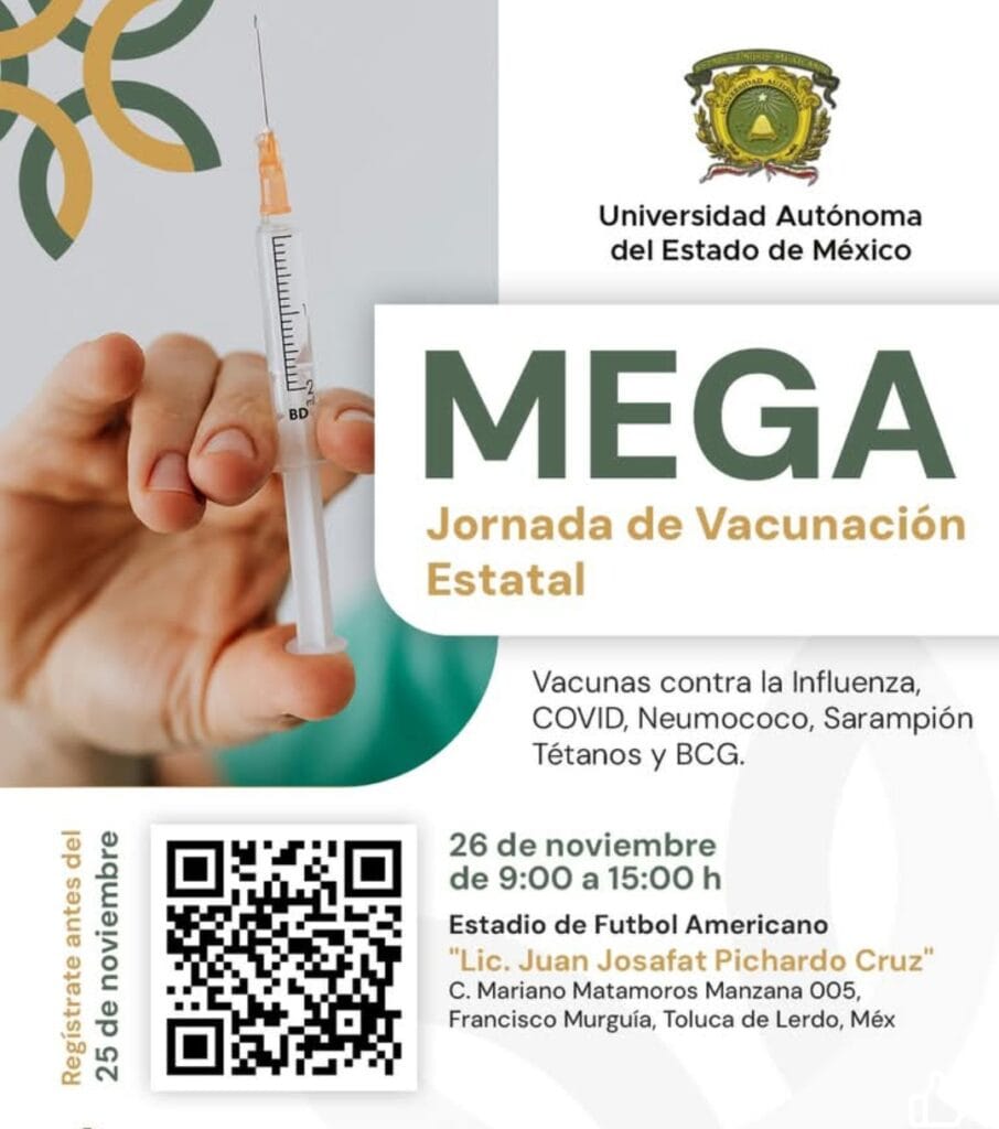 Para incrementar la cobertura de protección de la temporada invernal 2025-2026, la Secretaría de Salud del Edomex, en coordinación con la UAEMéx realizarán una jornada de vacunación en la que se priorizará la aplicación de biológicos contra influenza estacional, Covid-19 y neumococo.