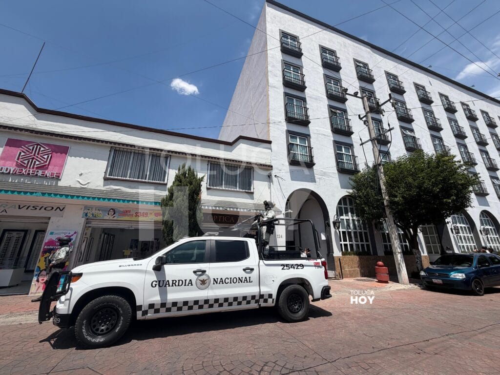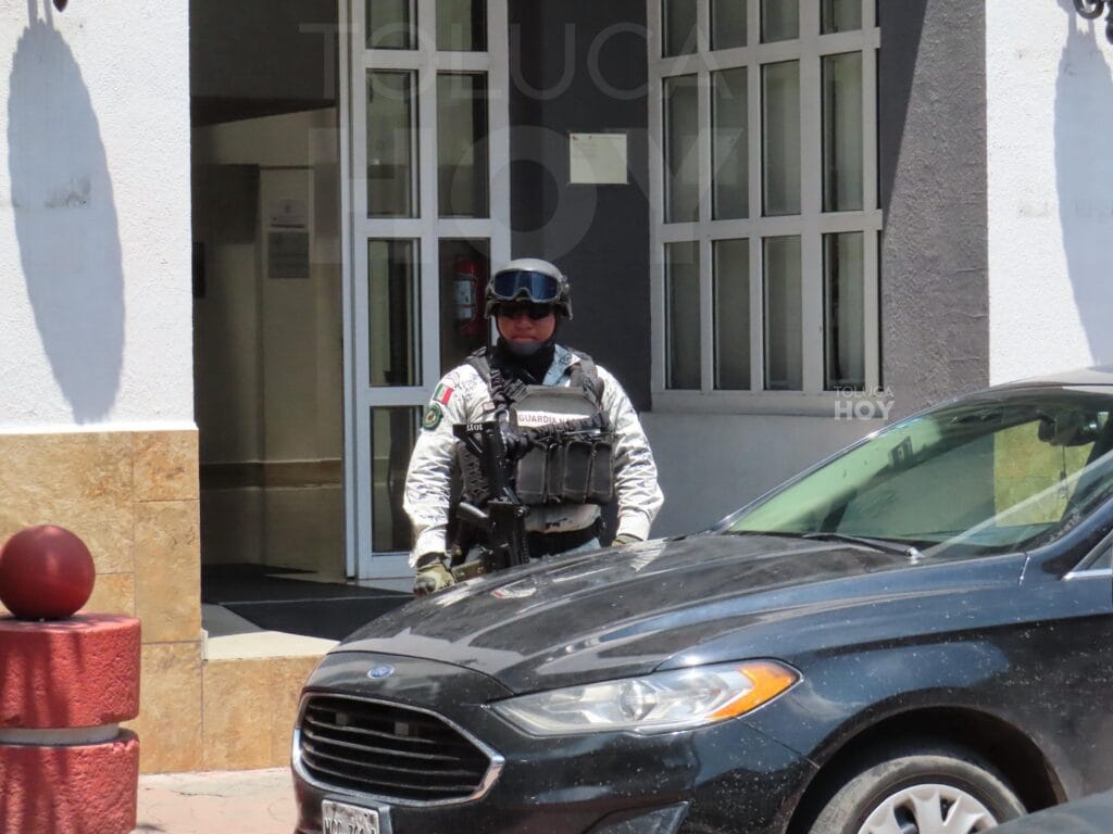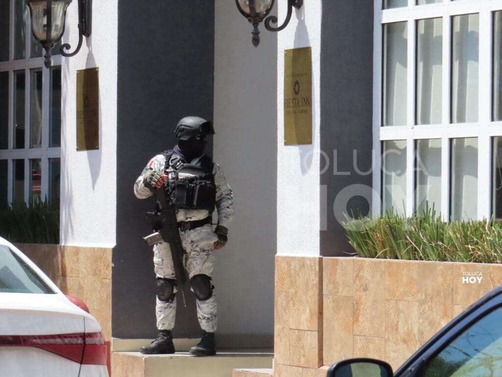 Al sitio llegaron elementos de la Guardia Nacional, policías estatales y locales, mientras se desarrollaba la movilización, trabajadores en una escalera quitaban el logo principal con el nombre de la cadena hotelera.
