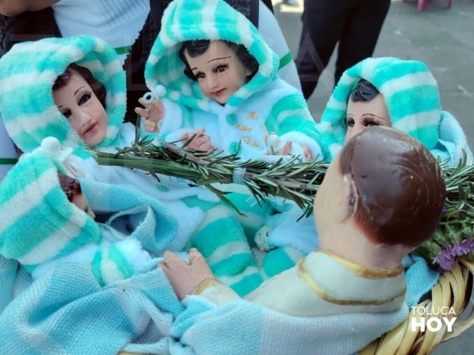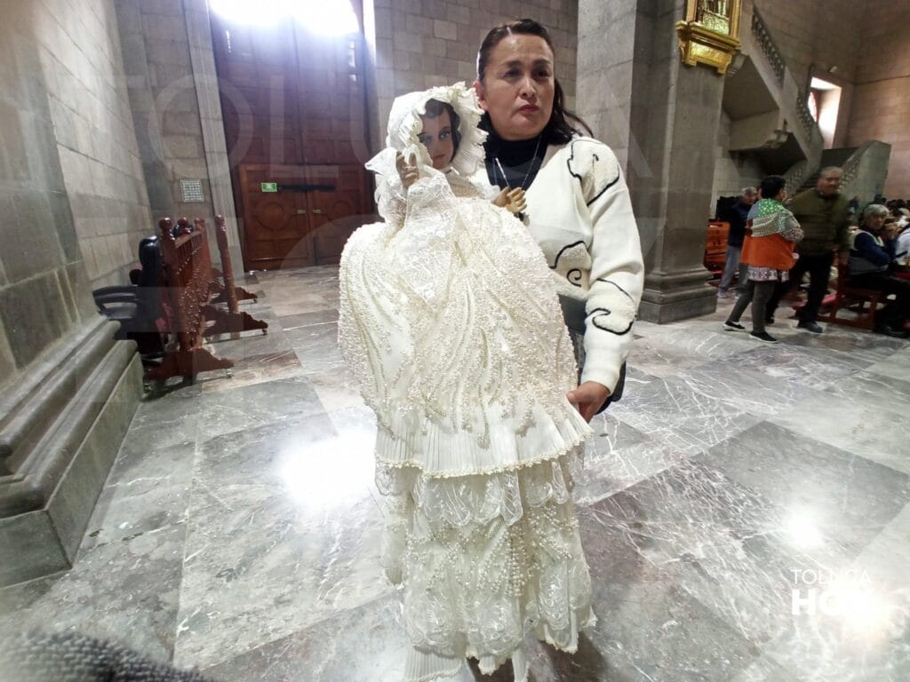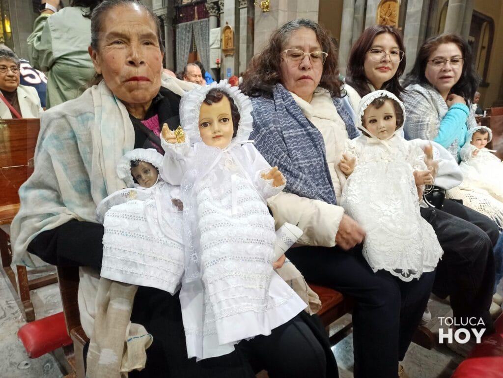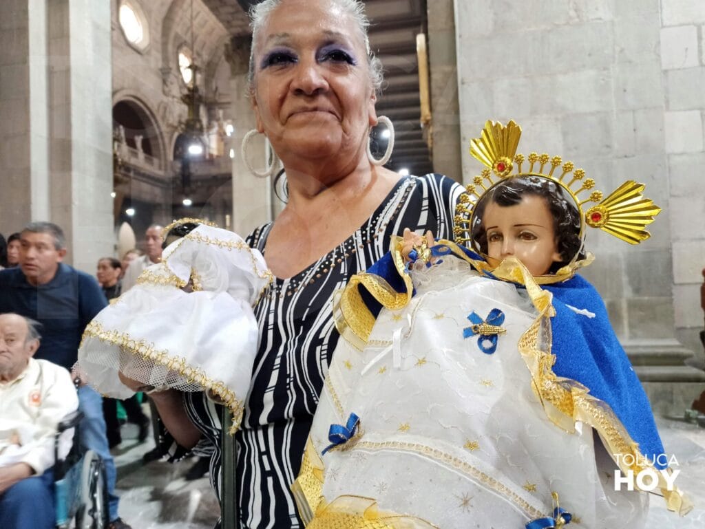 TOLUCA, Edomex; 2 de febrero de 2026.- Con velas encendidas en mano y cargando imágenes de Niño Dios estrenando vestidos y ropones, los toluqueños celebraron en la Catedral Metropolitana el Día de la Candelaria.