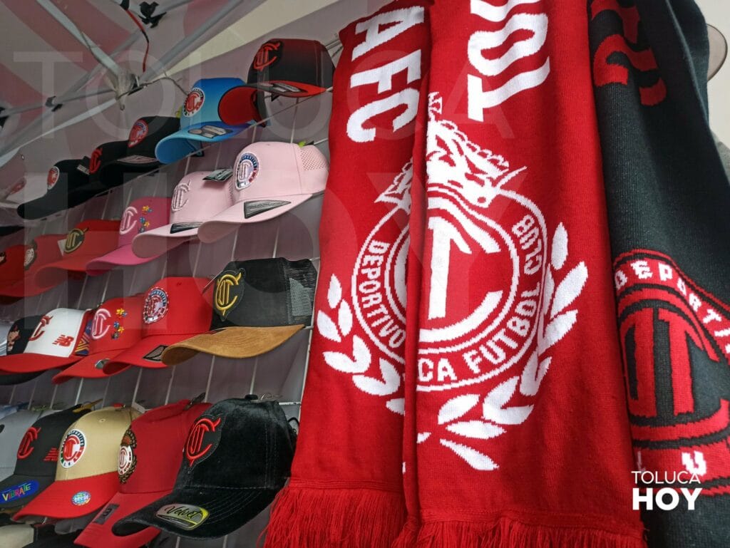 TOLUCA, Edomex; 11 de diciembre de 2025.- Con playeras del Club Deportivo Toluca, banderas, gorras, bufandas y más, adicionados del Toluca llenan de rojo la capital mexiquense ante la final del Apertura 2025 dónde el equipo choricero buscará el bicampeonato y la copa número 12.