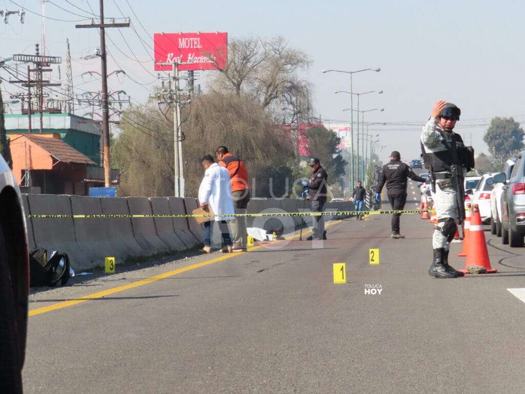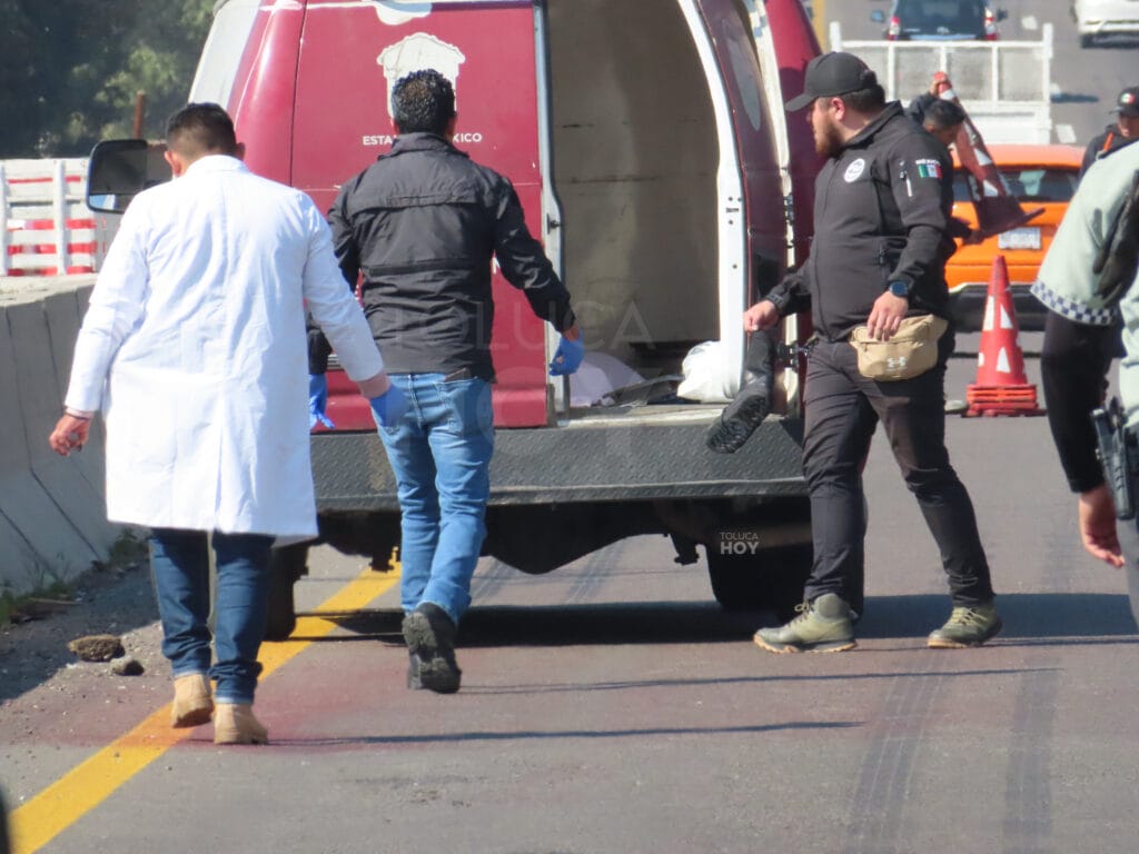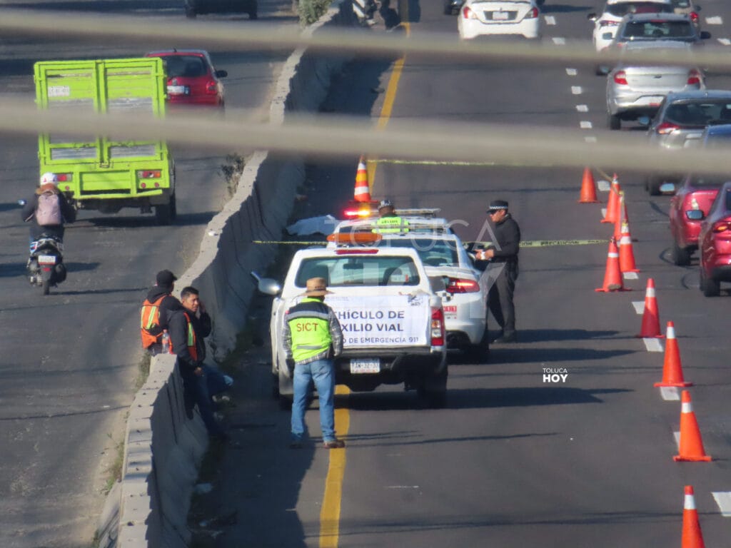 Los restos de la víctima terminaron a unos metros de un puente peatonal junto al muro de contención de la carretera México Toluca en dirección a San Mateo Atenco, al ser  alcanzado por un automovilista, la mañana del sábado.