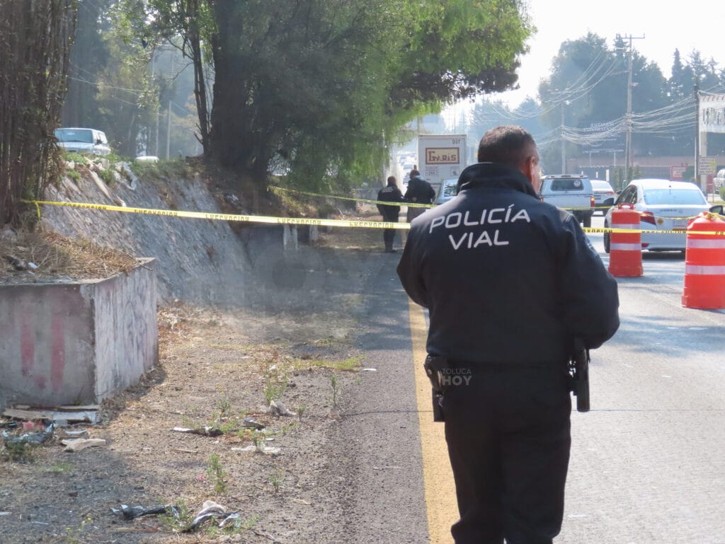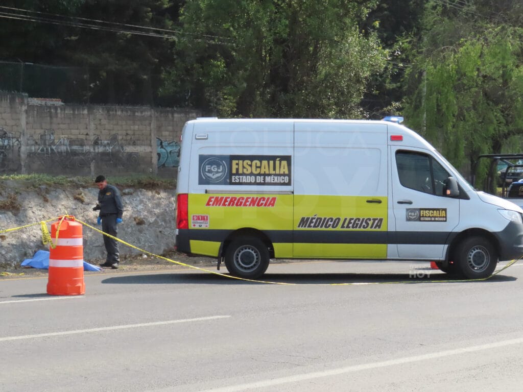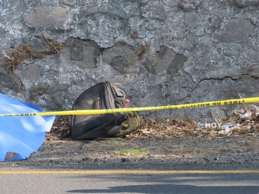 METEPEC, Edomex.,9 de marzo de 2026.-Un hombre que no pudo ser identificado quedó sin vida junto a la mochila color negro que llevaba en el acotamiento, luego de ser atropellado por el conductor de un vehículo que siguió su marcha en el barrio del Espíritu Santo.