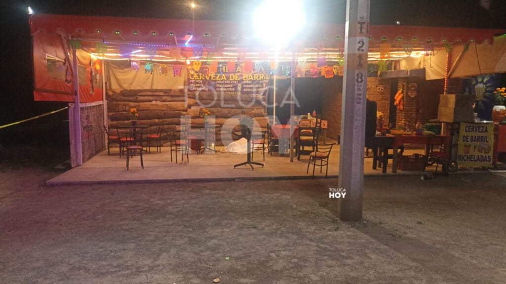 XONACATLÁN, Edomex.,31 de octubre de 2025.-A Juventino lo asesinaron a balazos al momento que se encontraba al interior de un puesto de micheladas, los agresores huyeron en una motocicleta en la colonia 5 de Mayo en los Ejidos de Santa María Zolotepec.