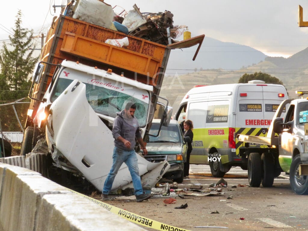 La mujer de 63 años, quedó en medio de las unidades, después de ser embestida cuando bajaba de una Ford Ranger verde para utilizar los baños ubicado en la caseta de cobro de la autopista que lleva a Ixtapan de la Sal.