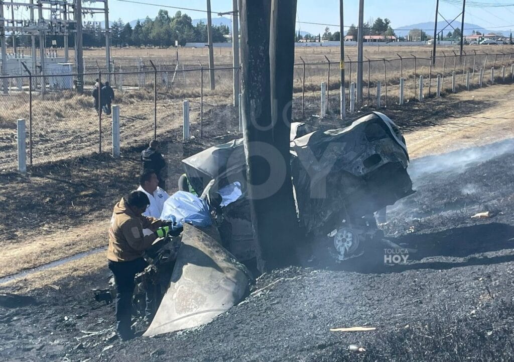 Las víctimas que terminaron irreconocibles al ser envueltas por el fuego al momento que circulaban a bordo de un Volkswagen Vento que chocó violentamente sobre la autopista Toluca Atlacomulco, antes de las 16 horas del martes.