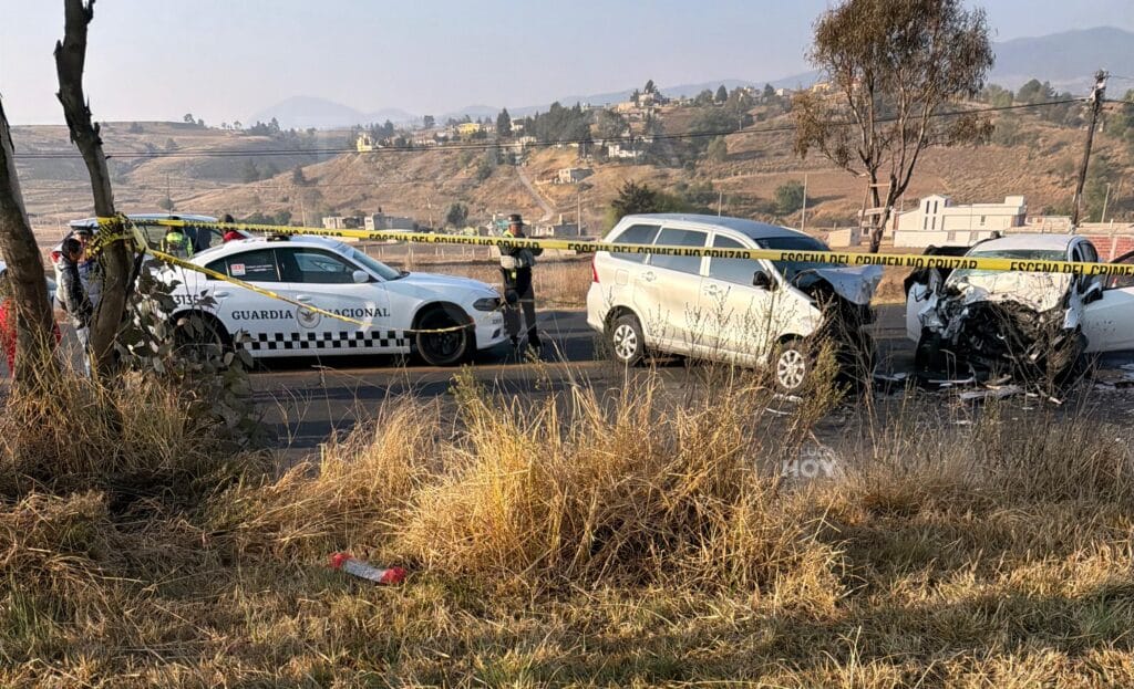 ALMOLOYA DE JUÁREZ, Edomex.,9 de marzo de 2026.-Marco y Guillermina fallecieron al interior del vehículo en el que viajaban luego de chocar de manera frontal contra una camioneta, en la comunidad de Ejidos de Tres Barrancas, familiares identificaron los cuerpos.