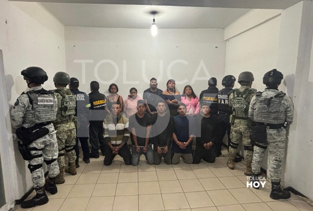 VILLA DE ALLENDE, Edomex.,22 de octubre de 2025.-Dos personas que se encontraban secuestradas, fueron rescatadas por policías, después de un enfrentamiento a balazos con delincuentes, logrando capturar a de 12 de ellos, en San Pablo Malacatepec.