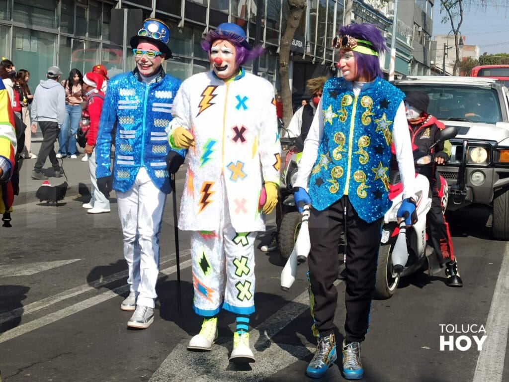 Con música, baile y bromas, llevaron la fiesta por las calles de Toluca, dónde además de sonrisas compartieron dulces y regalos.