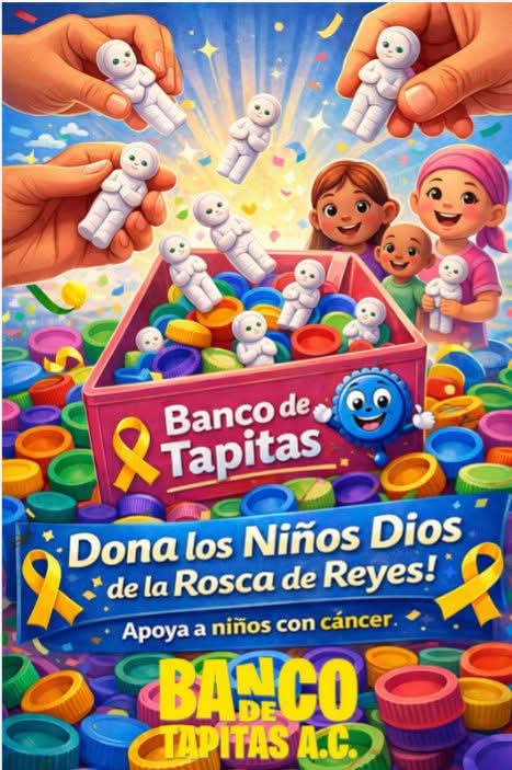 Si partiste la rosca de reyes y te salió el Niño Dios (muñequito de plástico), puedes juntarlo con las tapitas para donarlo y apoyar a niños y niñas que luchan contra el cáncer.
