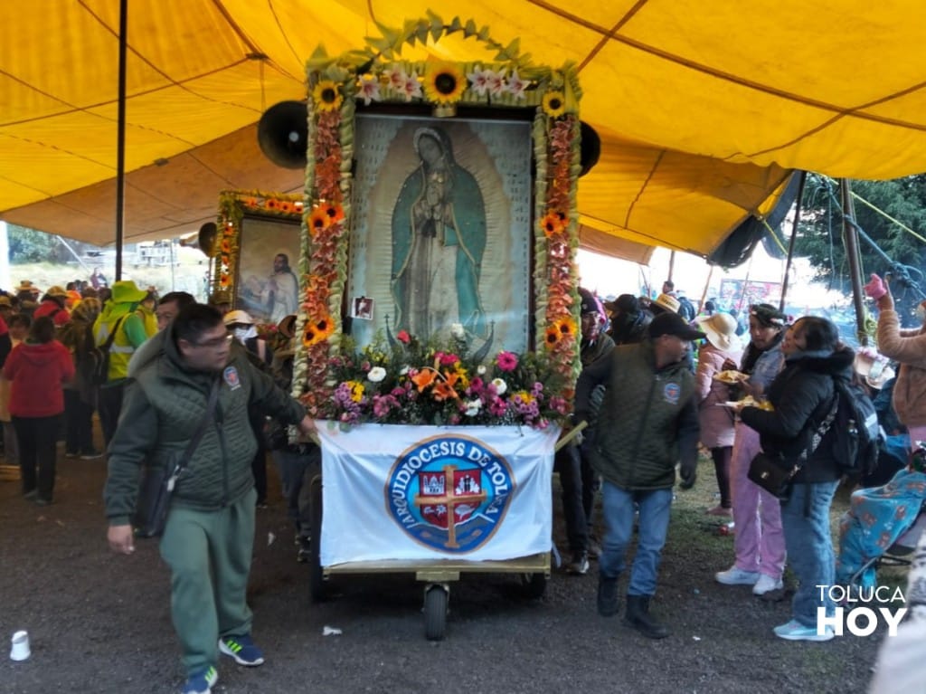 Luego de pasar la noche en Ocoyoacac, los más de 35 mil peregrinos de la Arquidiócesis de Toluca retomaron su andar hacia la Basílica de Guadalupe. Antes presenciaron la misa que oficio el arzobispo auxiliar Maximino Martínez. A pesar de las bajas temperaturas que generaron una helada, así como de